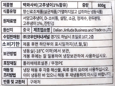 | 수입식품안전관리특별법에 따른 수입신고를 필함 여부 | 수입식품안전관리특별법에 따른 수입신고를 필함 |