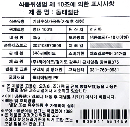| 식품등의표시.광고에관한법률에 따른 소비자안전을 위한 주의사항 | 부정, 불량식품 신고는 국번없이 1399 |