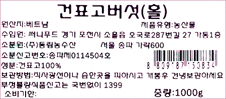 | 품목 또는 명칭 | 건표고버섯(홀) |