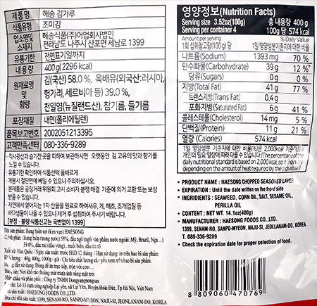 | 식품의 유형 | 조미김 |