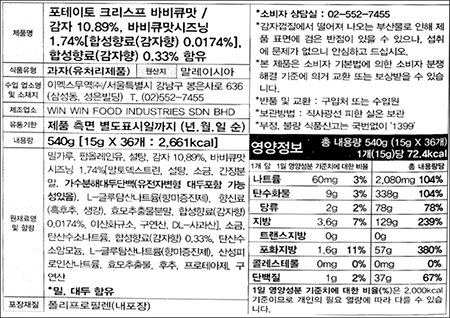 | 품명 및 모델명 | 포테이토 크리스프 바비큐맛 |