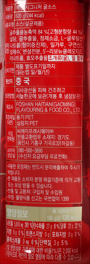 포장 단위별 내용물의 용량(중량), 수량, 크기 620g