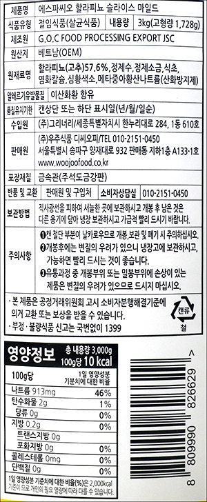 품명 및 모델명 에스파씨오 할라피뇨 슬라이스 마일드