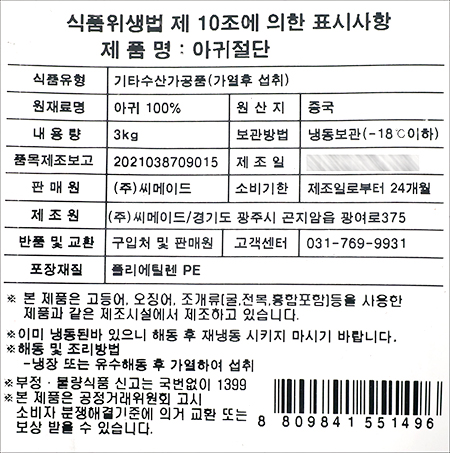 | 보관방법 또는 취급방법 | -18℃이하 냉동 보관 |