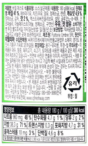 | 품명 및 모델명 | 바질 페스토 |