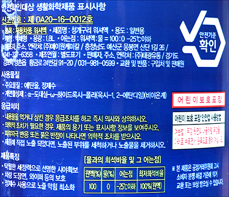 | 안전기준 적합확인 신고번호(자가검사번호) 또는 안전확인대상 생활화학제품 승인번호 | 상세설명참조 |