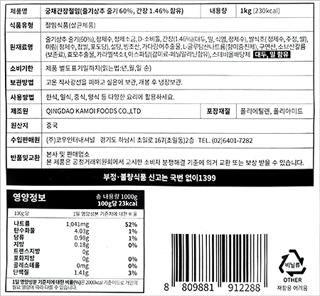 품명 및 모델명 궁채간장절임
