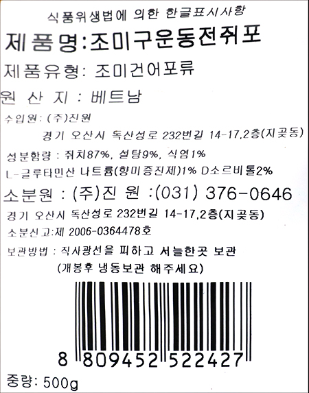 | 식품의 유형 | 조미건어포류 |
