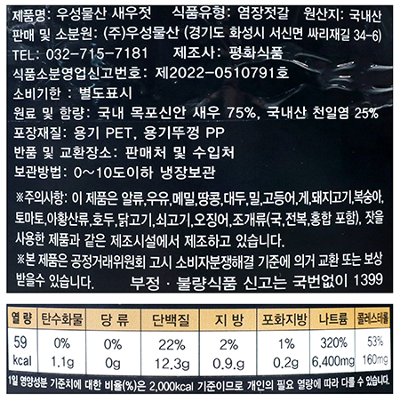 | 품명 및 모델명 | 우성물산 새우젓 |