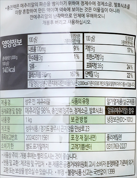 | 품명 및 모델명 | 성우 깐 메추리알 |