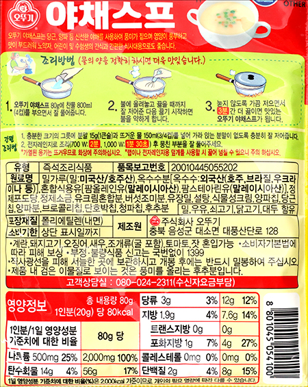 | 포장 단위별 내용물의 용량(중량), 수량, 크기 | 80g |