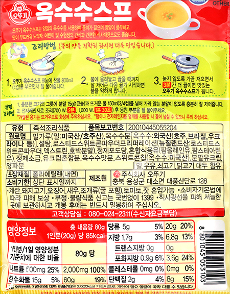 포장 단위별 내용물의 용량(중량), 수량, 크기 80g
