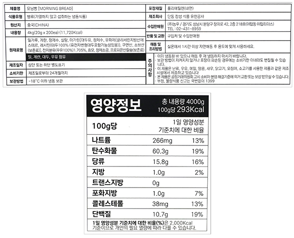 포장 단위별 내용물의 용량(중량), 수량, 크기 4kg
