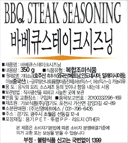 | 품명 및 모델명 | 바베큐스테이크시즈닝 |