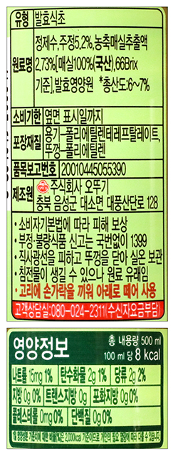 | 포장 단위별 내용물의 용량(중량), 수량, 크기 | 500ml |