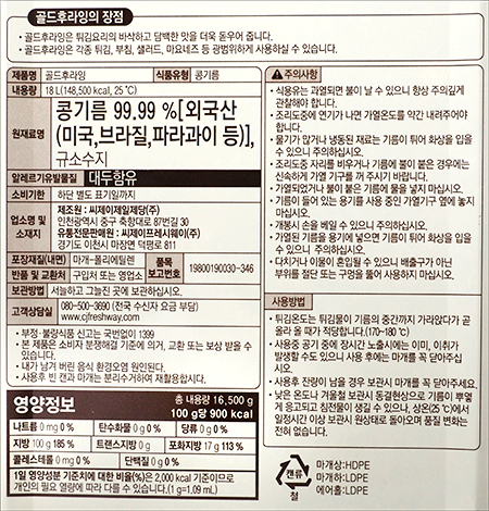 | 제조연월일, 소비기한 또는 품질유지기한 | 제조연월일로부터 18개월까지 |