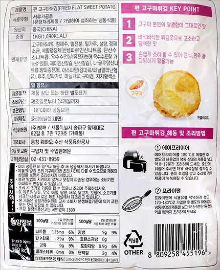 | 수입식품안전관리특별법에 따른 수입신고를 필함 여부 | 수입식품안전관리특별법에 따른 수입신고를 필함 |