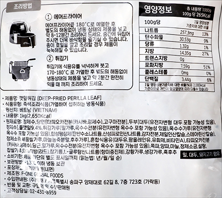 | 포장 단위별 내용물의 용량(중량), 수량, 크기 | 1kg |