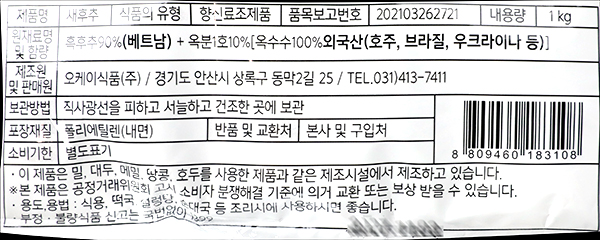 | 포장 단위별 내용물의 용량(중량), 수량, 크기 | 1kg |