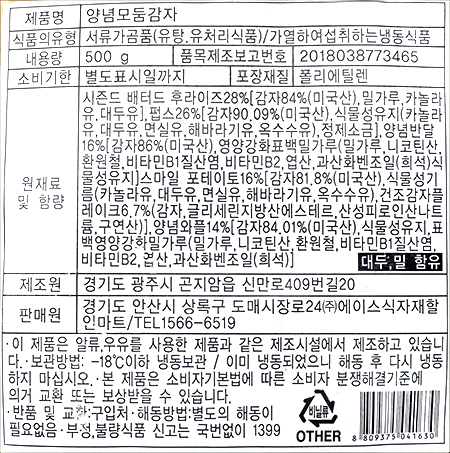 | 포장 단위별 내용물의 용량(중량), 수량, 크기 | 500g |
