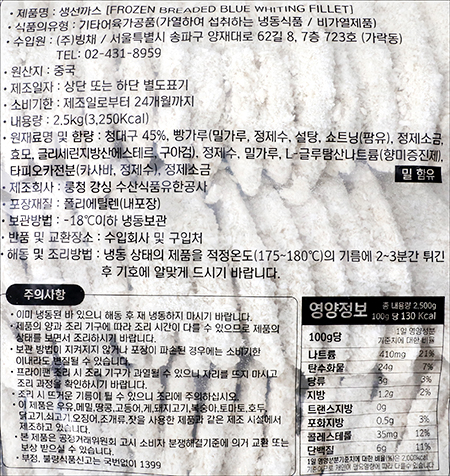 | 품명 및 모델명 | 생선까스 |