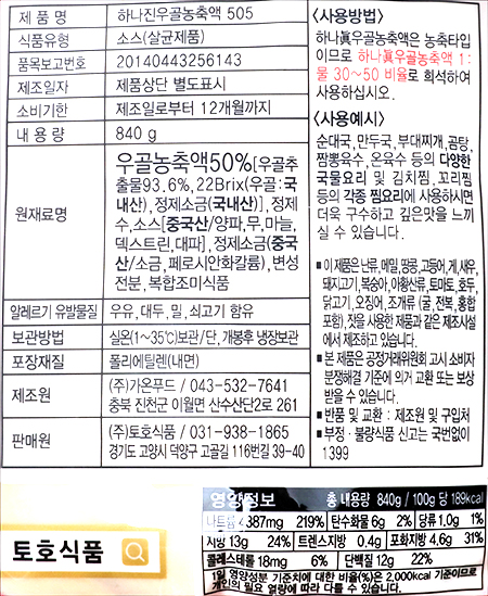 | 품명 및 모델명 | 하나진우골농축액 505 |