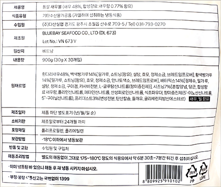 | 품명 및 모델명 | 통살 새우볼 |