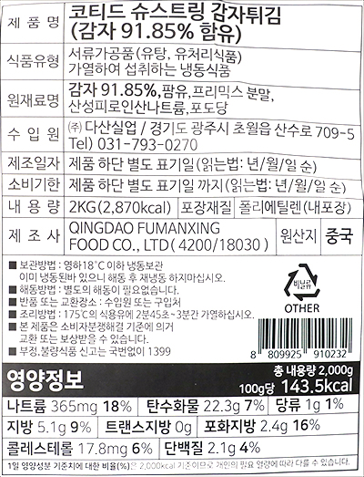 | 품명 및 모델명 | 코티드 슈스트링 감자튀김 |