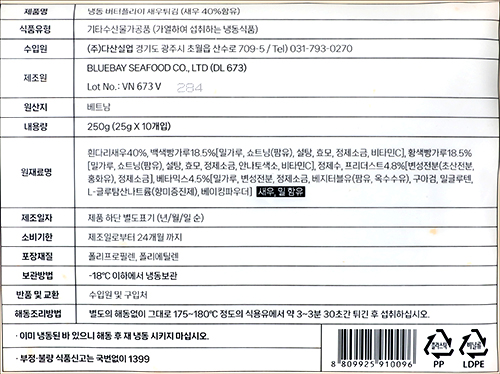 | 품명 및 모델명 | 냉동 버터플라이 새우튀김 |