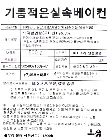 | 품명 및 모델명 | 기름적은실속베이컨 |
