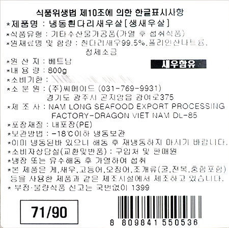 | 품명 및 모델명 | 냉동흰다리새우살 |