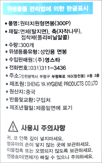 | 품명 및 모델명 | 원터치원형면봉(300p) |