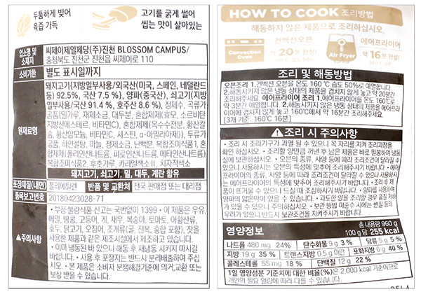 | 제조연월일, 소비기한 또는 품질유지기한 | 제조연월일로부터 9개월까지 |