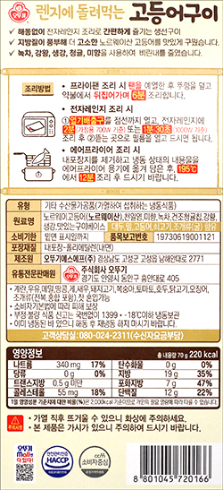 렌지에돌려먹는고등어구이 70g/오뚜기