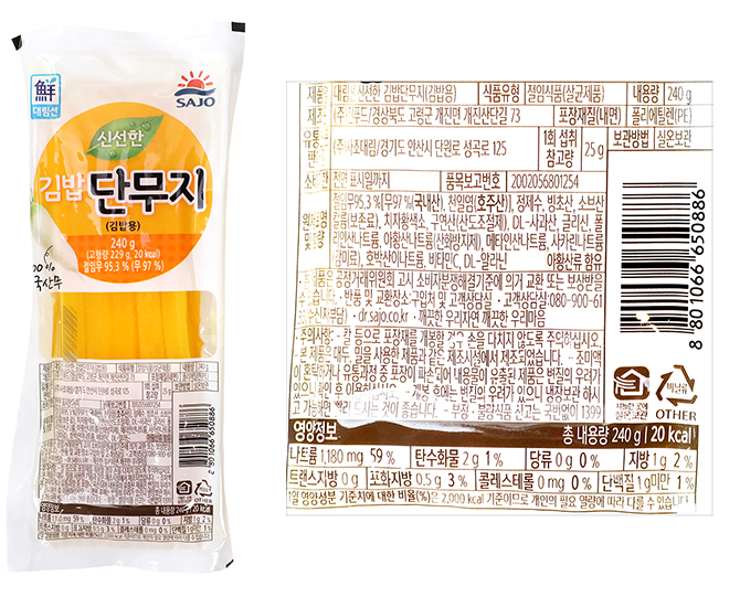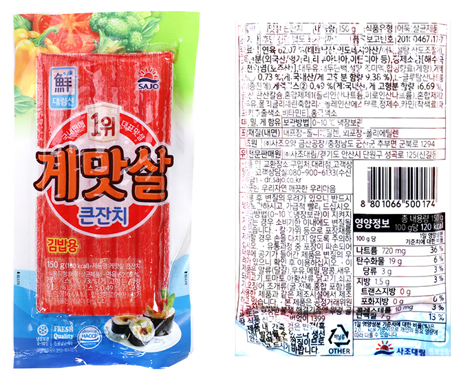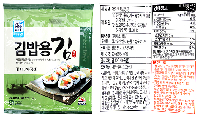 | 식품의 유형 | 조미김,어묵,절임식품,소세지 |