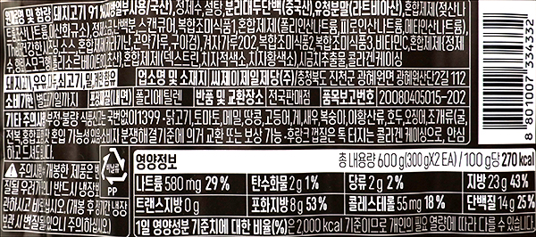 | 포장 단위별 내용물의 용량(중량), 수량, 크기 | 300g*2입 |