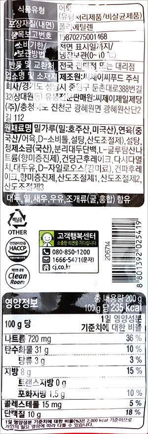 | 식품의 유형 | 어묵 |