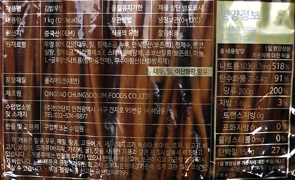 | 포장 단위별 내용물의 용량(중량), 수량, 크기 | 1kg |