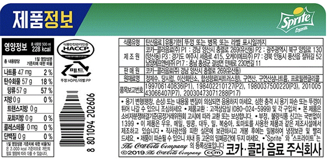 | 제조연월일, 소비기한 또는 품질유지기한 | 제조연월일로부터 12개월까지 |