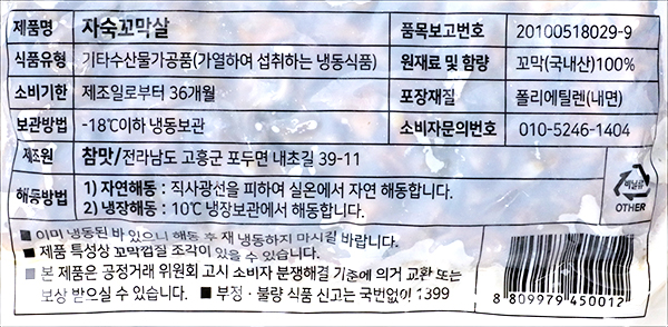 | 품명 및 모델명 | 자숙꼬막살 |