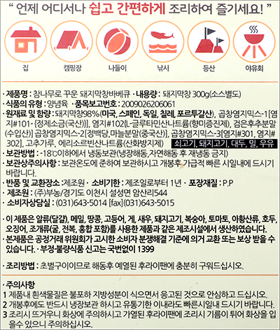 | 품명 및 모델명 | 참나무로 꾸운 돼지막창바베큐 |