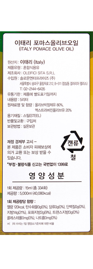 | 품명 및 모델명 | 이태리 포마스올리브오일 |