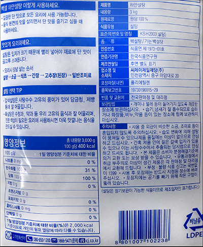 | 포장 단위별 내용물의 용량(중량), 수량, 크기 | 3kg |