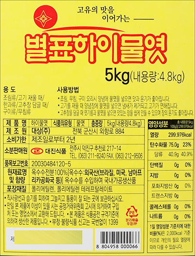 | 포장 단위별 내용물의 용량(중량), 수량, 크기 | 4.8kg |