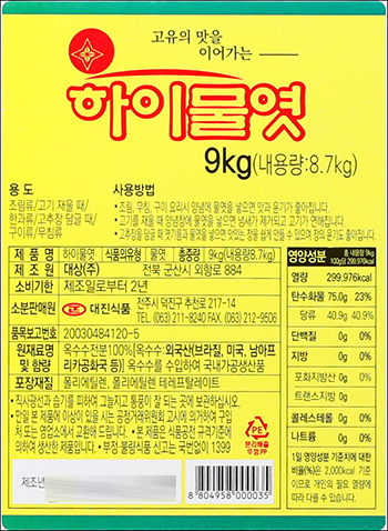 | 수입식품안전관리특별법에 따른 수입신고를 필함 여부 | 해당사항 없음 |